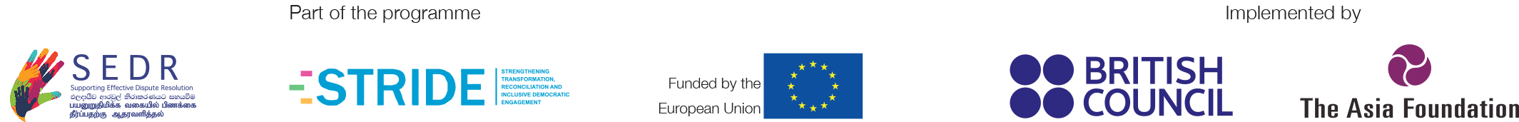 The mediation process empowers parties to resolve their disputes by negotiating concrete and mutually satisfactory agreements with the help and guidance of skilled mediators. The mediation programme in Sri Lanka is led by the Mediation Boards Commission with policy and administrative support of the Ministry of Justice, and is strengthened by mediators who volunteer their time to resolve people’s disputes.